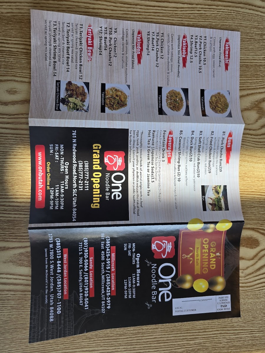 Welcome to One Noodle Bar - North Salt Lake, a gem nestled at 761 N Redwood Rd, poised to tantalize your taste buds with a delightful menu brimming with Japanese and Asian-inspired dishes. This charming eatery captivates diners with its trendy atmosphere, inviting you to dive into a world of flavorful experiences.